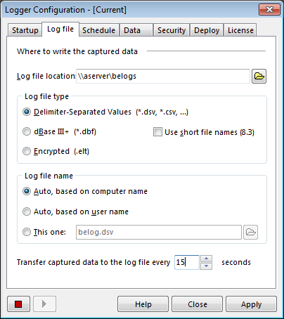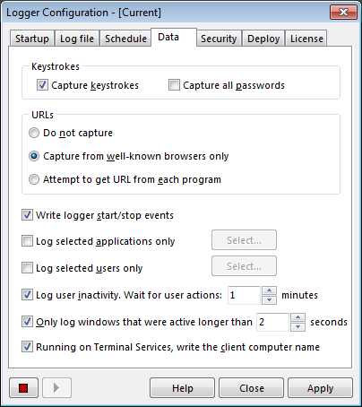 Screenshots: Logger Configuration tool